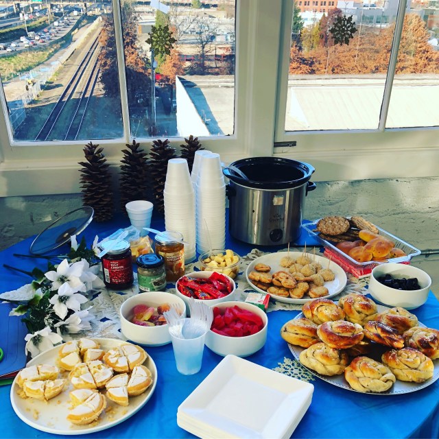 My colleagues and I approximated Sweden in the java shop and I don’t know how to narrate this picture effectively, we simply hecking nailed it: cardamon buns, herring, for a brief moment we had it ALL.