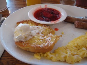 The wedding was lovely. Aaron’s mother was beautiful and happy, mission accomplished. The cake looked great, but I didn’t try any. . .I have no idea why. The morning after the wedding we headed to Seaside, a sleepy beach town where James Beard spent is summers as a child. I was thrilled to see this place and even more thrilled to experience a staple of Aaron’s summers in Seaside, the Pig and Pancake Diner.