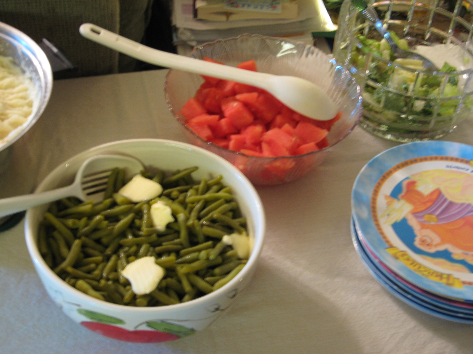 I met Aaron’s Aunt Peggy on our last night in town. We drove to her house outside of Portland and I discovered that Aaron did not, in fact, sprout full grown out from the muddy banks of the Columbia River. He has RELATIVES y’all. Living, breathing, kin’ folk! Aunt Peggy has a calendar for Sunday suppers. Everyone knows when they will happen and everyone shows up. There is a large television in the living room, a fridge filled with soda, and Uncle Doug’s wolf prowls the backyard. There are a ton of similarities between what I’ve come to know as Southern “country cooking” and what Aunt Peggy calls NorthWestern “farm cooking”. Both are hearty, feature seasonal and local produce, and involve dairy and pork the majority of the time. Aunt Peggy placed four huge pats of margarine on the fresh green beans. Ha. Not only in the South.