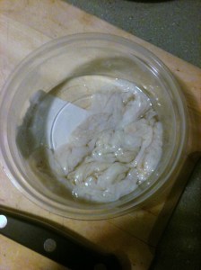 I’ve always credited Anosmia as the gift that allows me to be grossed out by very few things. In fact, most things that really make me gag: glitter, substances that change the color of my tongue, haphazard political discussions, are things that I’m told others enjoy. I was surprised to feel very…tested…when the act of running water through this bovine tract made my stomach curdle. These need to sit in salt water for an hour so after The Handling I took a much needed breather and left my apartment, expecting to return to the task with renewed enthusiasm.