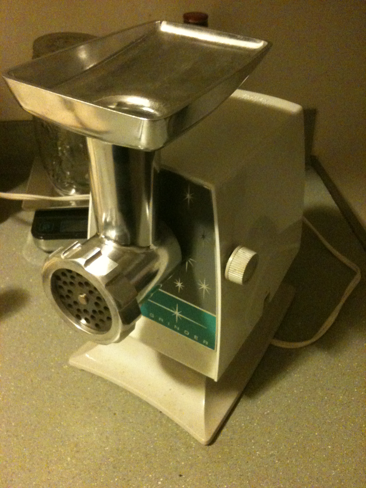 Back on track, the blood needs to combine with the prepped raw mix, run through the grinder and find solace in the intestines of the animal from which it came.